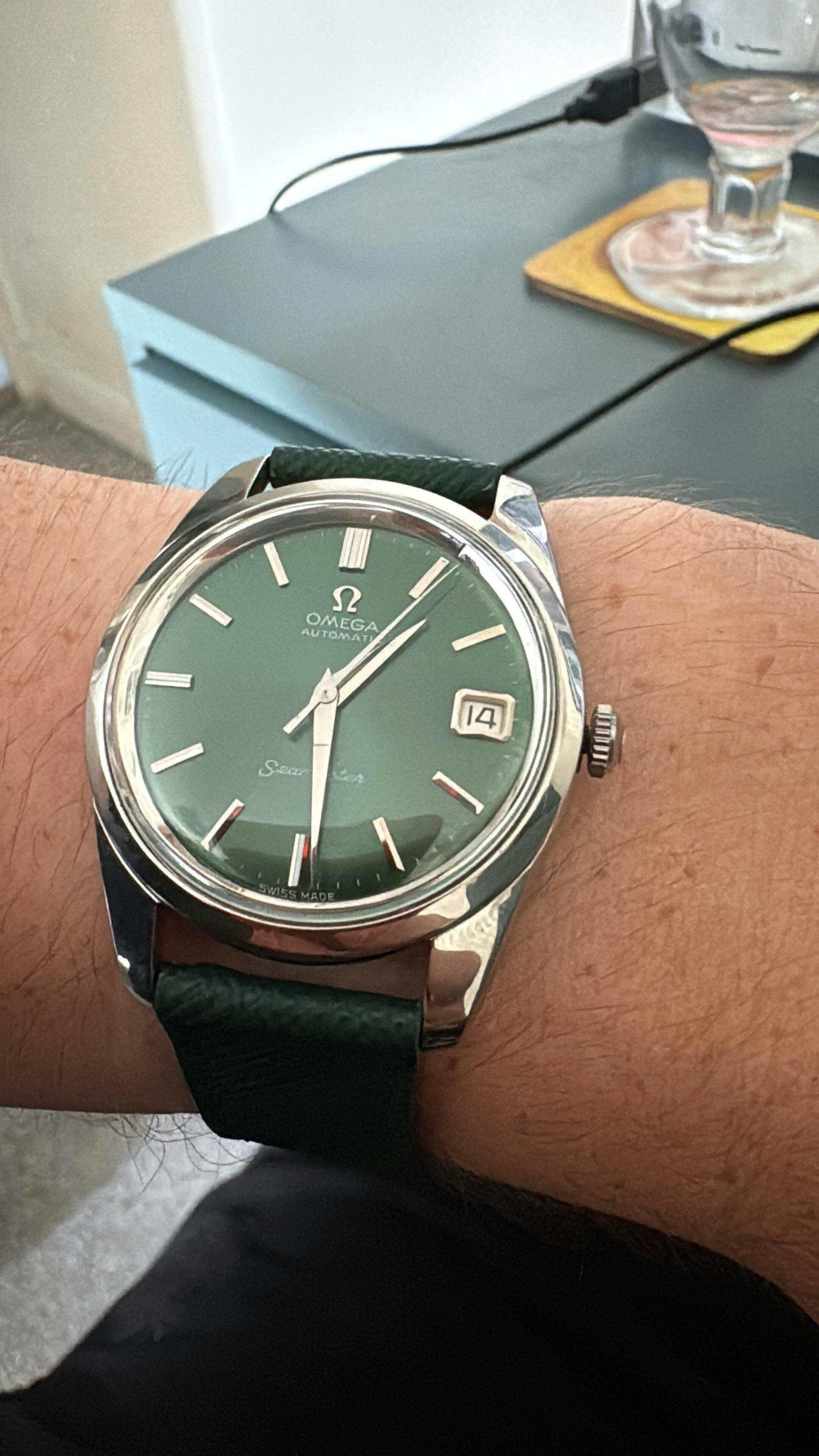 - Dial: Emerald Green with silver and white hour markers.