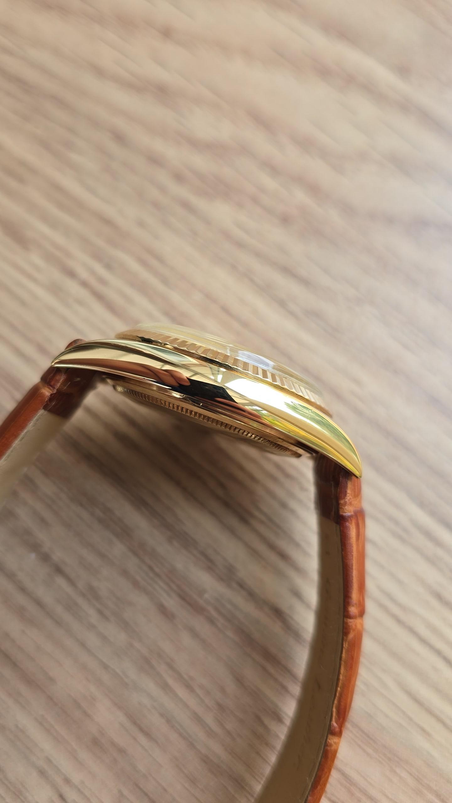 - Band: Premium Brown Leather Strap with Gold Rolex Buckle.