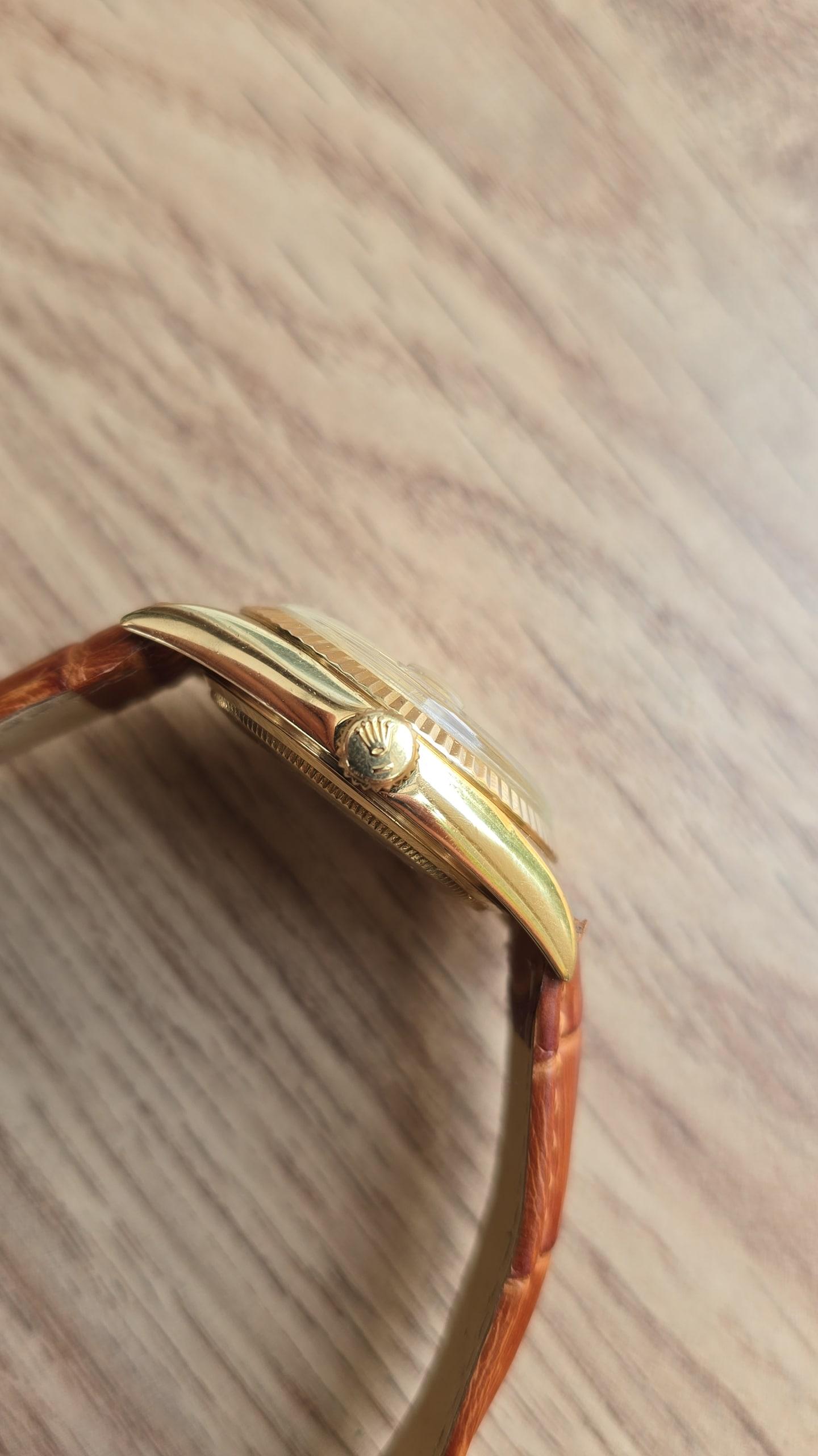 The 1965 Rolex Day-Date 1803 is a distinguished vintage timepiece crafted in solid gold with a 36mm case. Its elegant champagne dial complements the automatic 1556 movement, renowned for precision and durability. Featuring the iconic Day-Date complication, this watch offers both practicality and timeless style. Included are the original Rolex box, papers, instruction manuals, and swing tags, ensuring authenticity and collector value. A true classic for discerning enthusiasts.