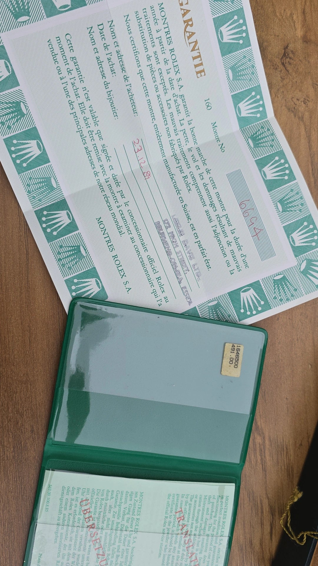 - Case markings (inside): MONTRES ROLEX SA | Geneve, Switzerland, Patented.